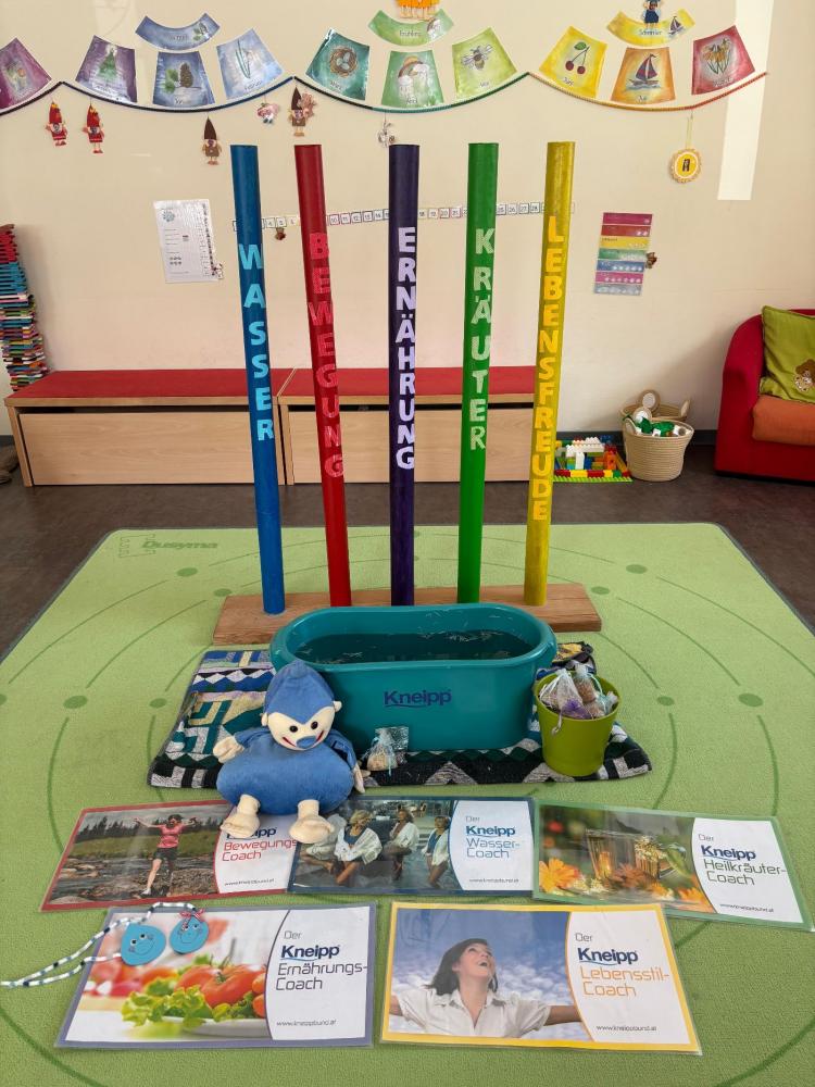 Die Kinder lieben die Kneipp-Anwendungen mit dem Kneippmaskottchen "Tropf und Tröpfchen, das ist klar, finden Wasser wunderbar. Und sie freuen sich kugelrund, denn das Wasser ist gesund!"